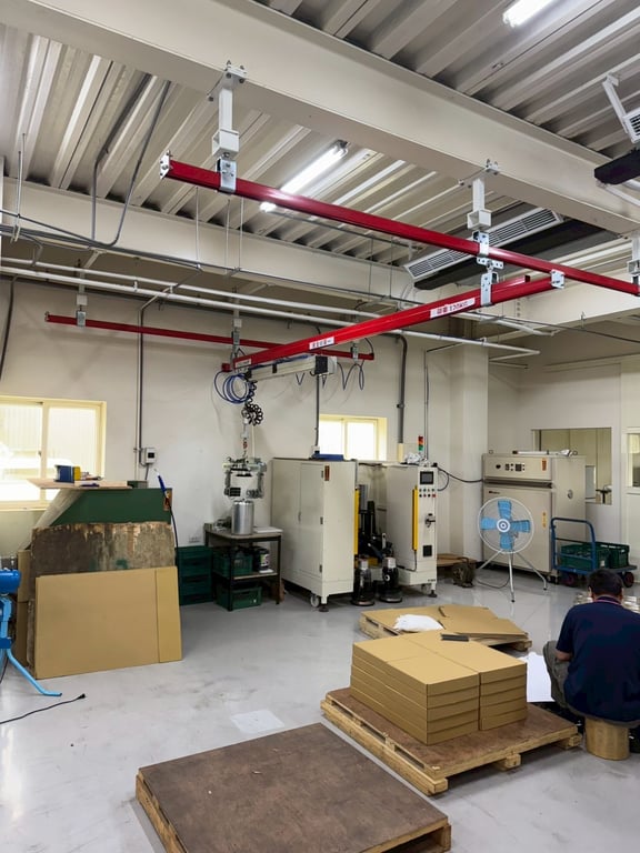 Lắp đặt hệ thống thanh ray nhẹ tải trọng 200kg kết hợp air balancer Fullsharp và bộ đồ kẹp gắp cuộn chuyên dụng. Giải pháp nâng hạ không trọng lực, di chuyển linh hoạt, an toàn cho công nhân. Hệ thống cân bằng khí nén giúp thao tác nhẹ nhàng, chính xác, gi