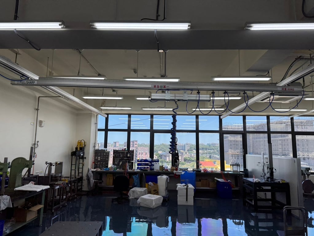 Hệ thống thanh ray nhôm treo trần kết hợp Air Balancer Fullsharp 100kg. Nâng hạ không trọng lực, linh hoạt, giảm mỏi cơ bắp. Tối ưu năng suất, an toàn tuyệt đối. Tư vấn miễn phí!