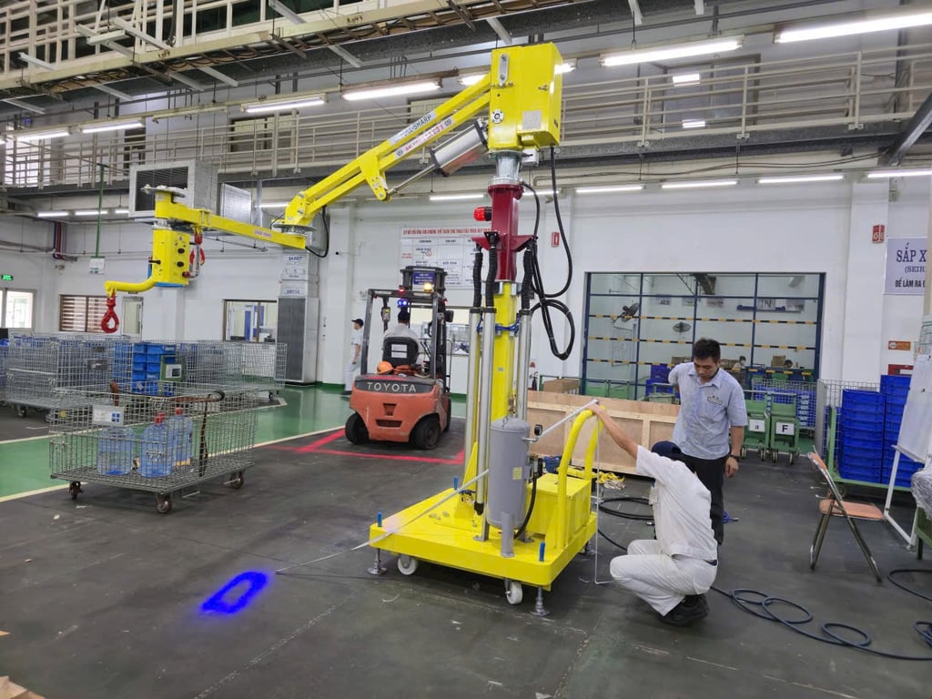 Tay nâng trợ lực khí nén chuyên dụng hỗ trợ đổ nguyên liệu an toàn, hiệu quả trong nhà máy hóa chất. Thiết kế bền bỉ, vận hành nhẹ nhàng, tiết kiệm sức lao động.