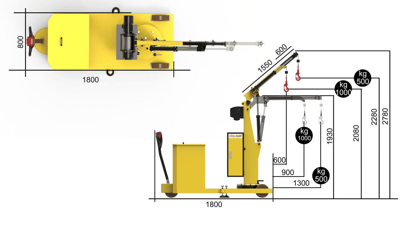 | Tải trọng tối đa khi cần cẩu ngắn nhất | kg | 1000 |
