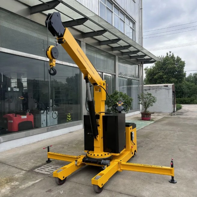 - Móc cẩu có thể vươn xa, phù hợp nâng hạ vật liệu có tải trọng dưới 2 tấn, đặc biệt thích hợp cho các vật nhỏ trên mặt đất.